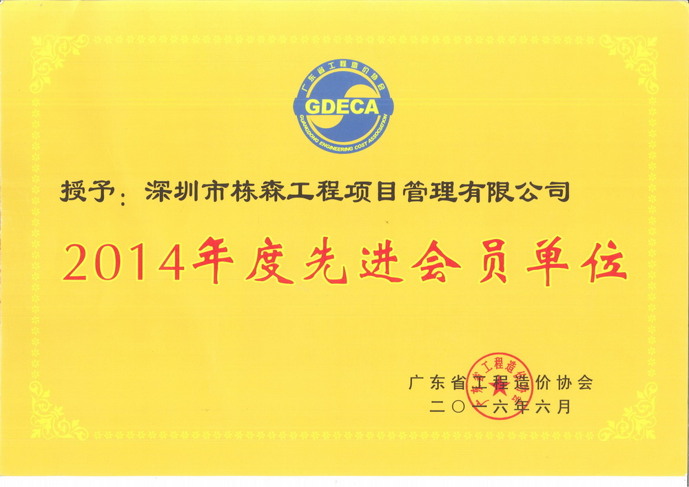 廣東省工程造價(jià)協(xié)會(huì)2014年度先進(jìn)會(huì)員單位