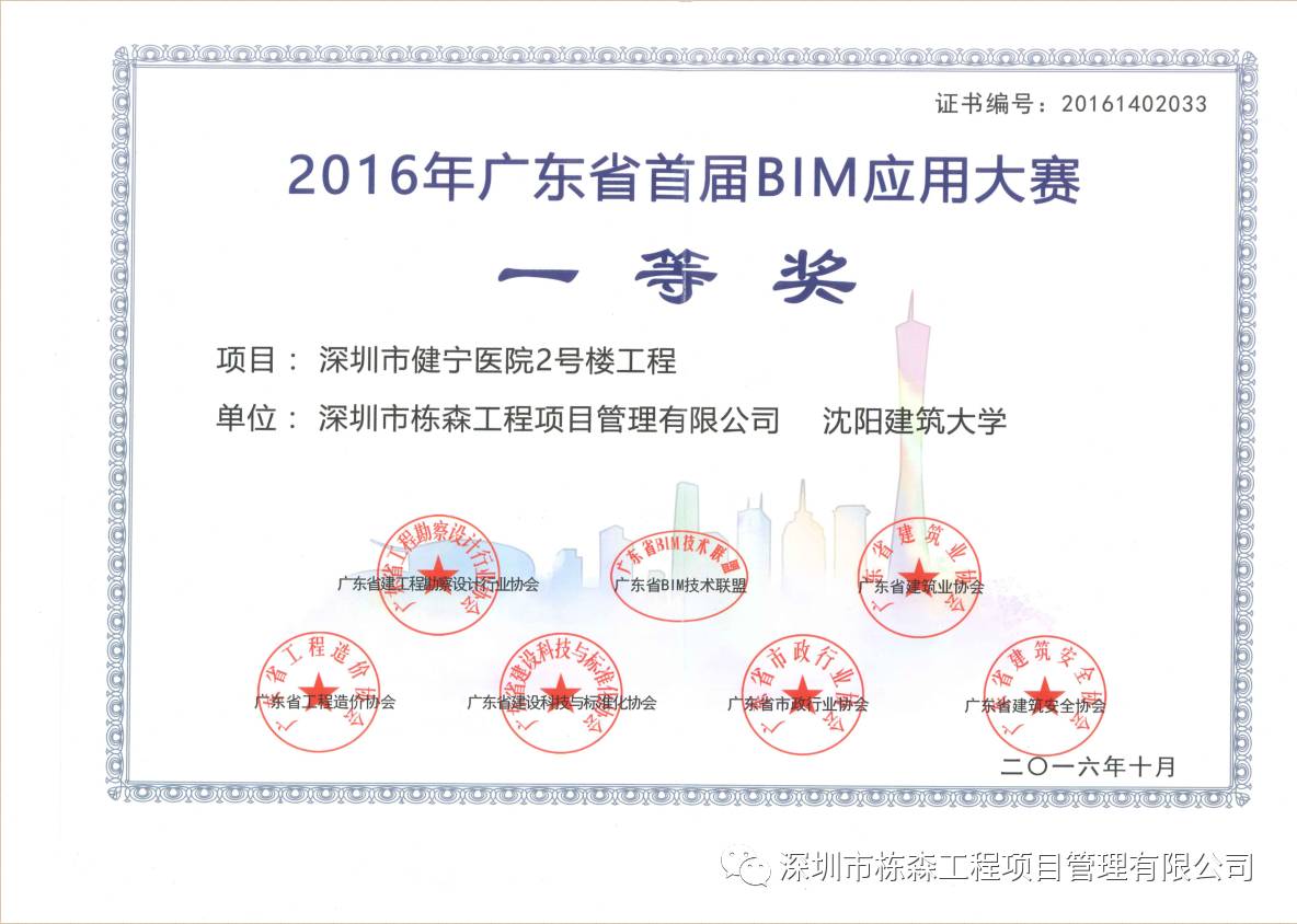 會上公布了《2016年廣東省首屆BIM應(yīng)用大賽獲獎結(jié)果的通知》,深圳市棟森工程項(xiàng)目管理有限公司與沈陽建筑大學(xué)合作,憑借“深圳市健寧醫(yī)院2號樓工程”項(xiàng)目榮獲大賽“造價組”一等獎,同時我司是深圳市唯一一家獲得一等獎的造價咨詢單位(廣東省共兩家),展示了公司在BIM造價應(yīng)用方面的深厚技術(shù)實(shí)力。