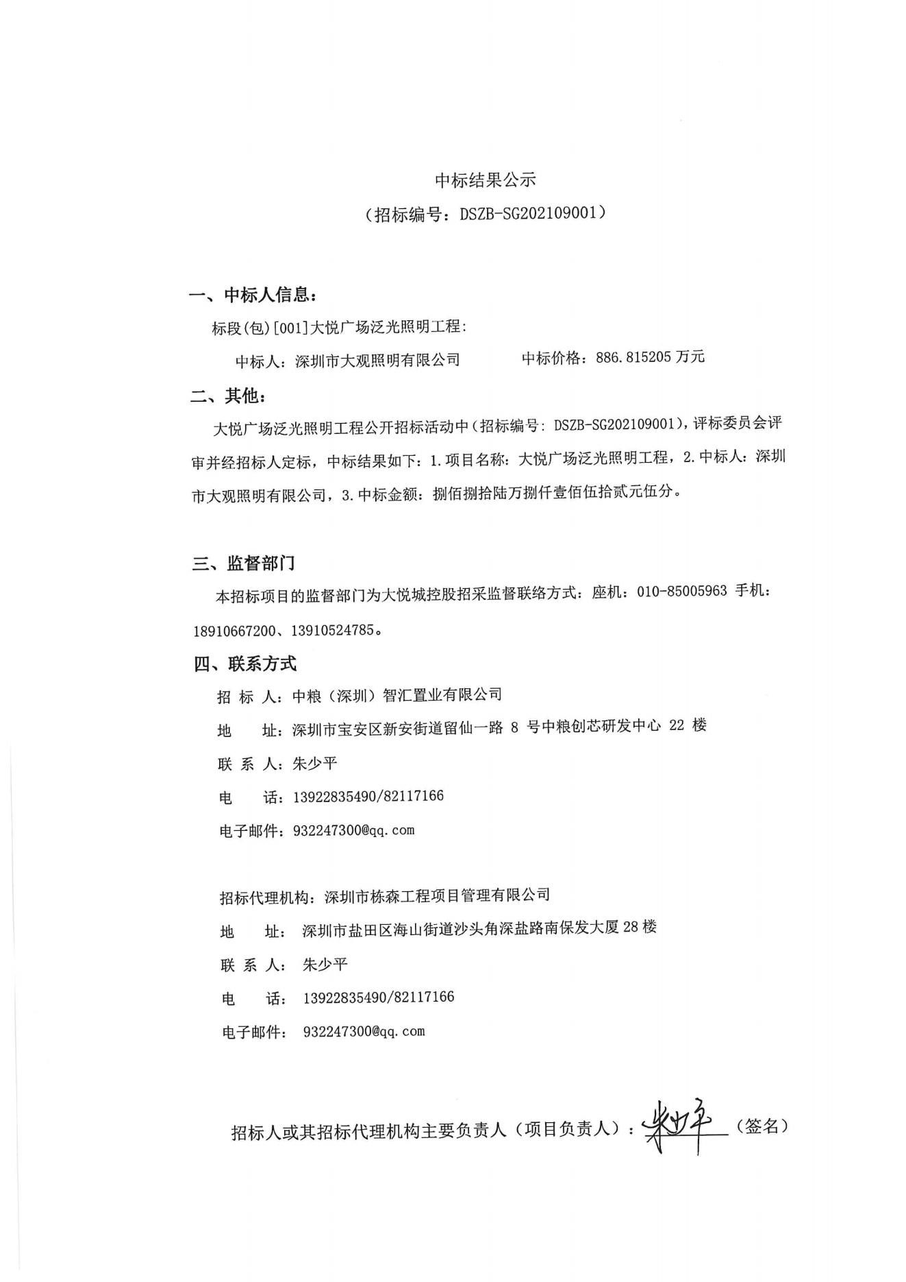 大悅廣場(chǎng)泛光照明工程中標(biāo)結(jié)果公示