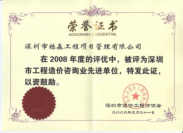 榮獲造價(jià)咨詢先進(jìn)單位稱號(hào)(2008年度) |
