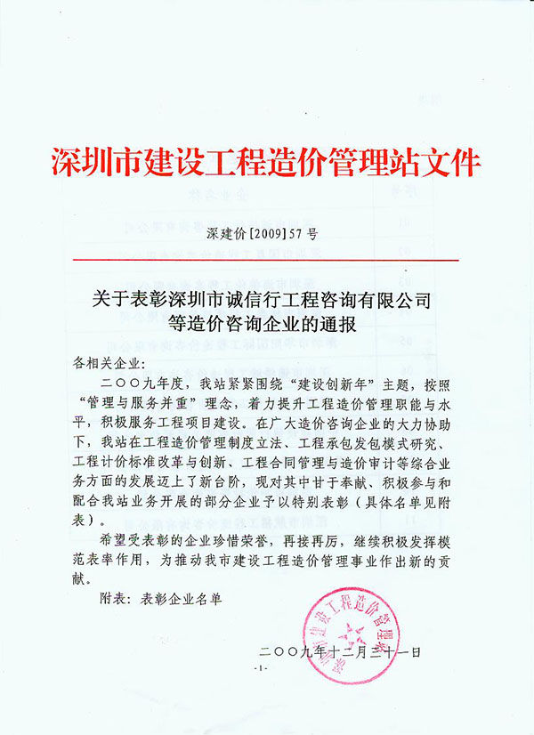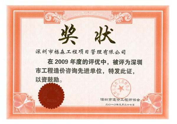 | 榮獲造價(jià)咨詢先進(jìn)單位稱號(hào)(2009年度) |