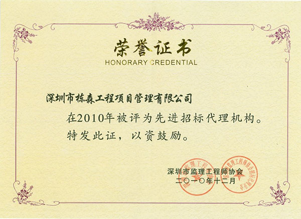 | 榮獲招標(biāo)代理先進(jìn)單位稱號(hào)(2010年度) |