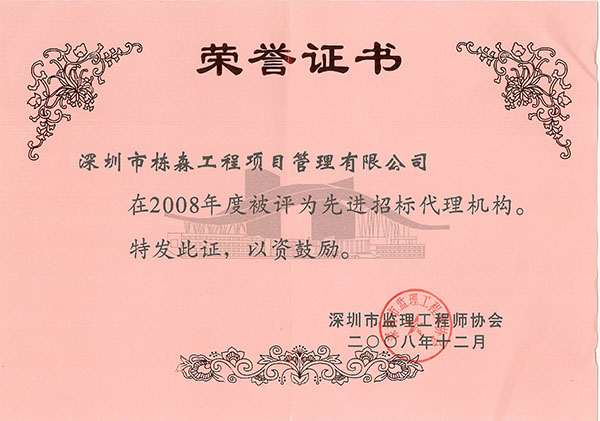 榮獲招標(biāo)代理先進(jìn)單位稱號(hào)(2008年度) |