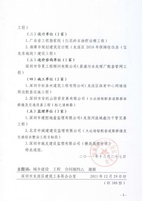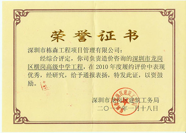榮獲龍崗區(qū)建筑工務(wù)局2010年度履約優(yōu)秀單位 |
