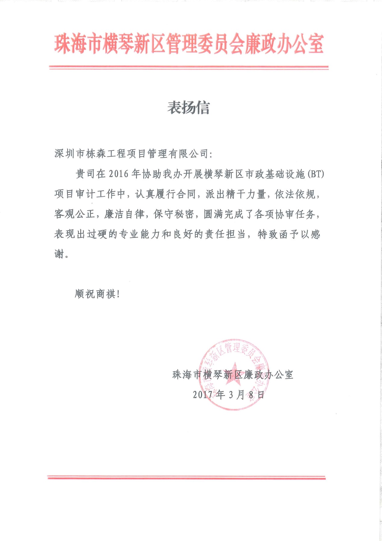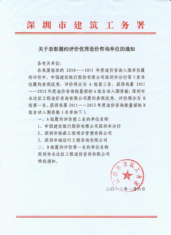 榮獲深圳市建筑工務(wù)署履約評(píng)價(jià)優(yōu)秀單位 |